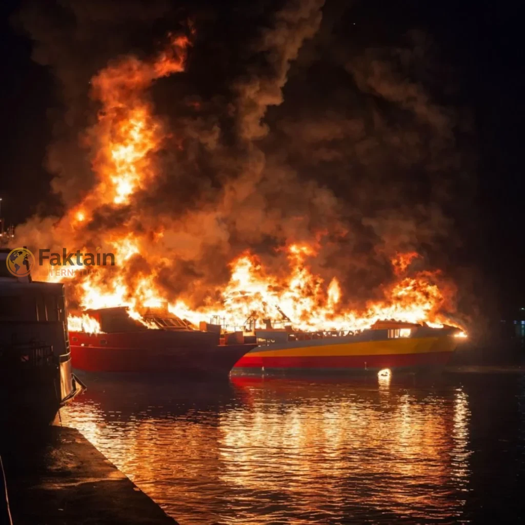 A massive fire at a Langkawi dockyard destroyed three ferries undergoing maintenance last night. No casualties were reported despite extensive damage.